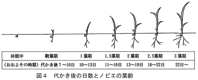 雑草は、代かき後から発生が始まります(図4)。その年の気象により、雑草の発育の早さは異な