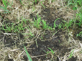 5月末に、80アールの放牧場3区に作溝式播種機を用いて、オーチャードグラスを播種しました。その後、既存草の草丈に応じた放牧を実施しながら、被度、草量から見た新播牧草の定着度を観察しています。これにより、播種後の最適な放牧開始時期を明らかにしていく予定です。