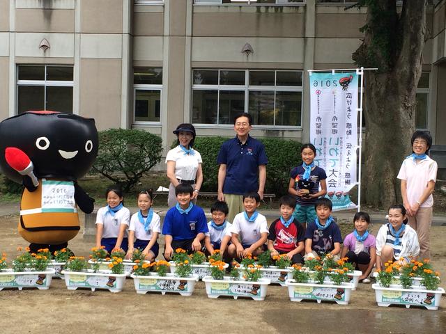 - 午後1時15分 希望郷いわて国体・希望郷いわて大会に向けての「花いっぱい運動」で、大慈寺小学校の児童と一緒に花を植えました。(盛岡市立大慈寺小学校)