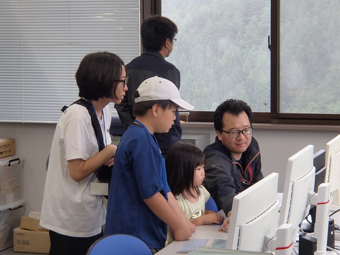日向ダムの役割や地域との関係等について理解を深め、さらに、管理棟では監視カメラの操作体験もしていただきました。