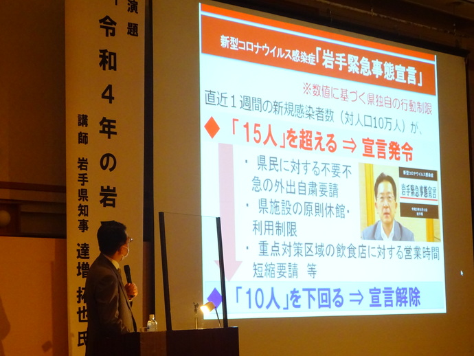 - 午後3時30分 岩手県経営者協会経営者懇談会に出席し「令和4年の岩手県」と題して講演を行いました(盛岡グランドホテル)