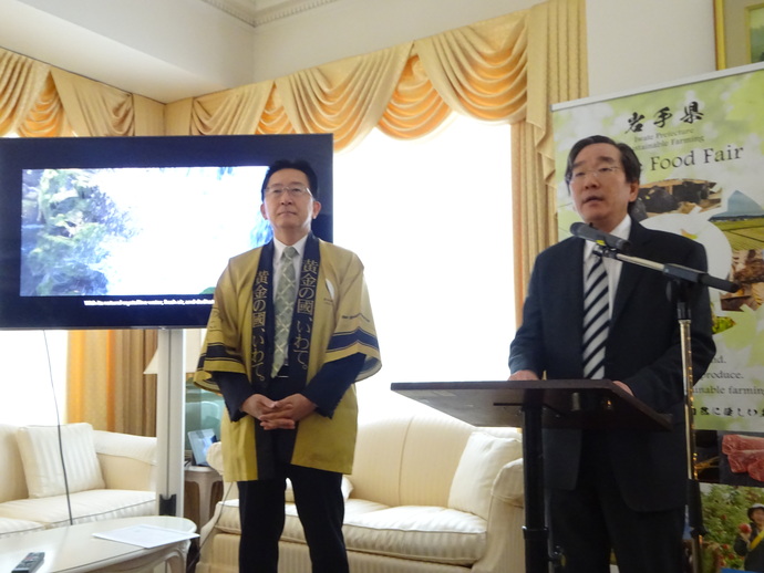 - 午後6時00分 在カナダ日本国大使館の協力をいだだき、カナダ政府関係者や日本と交流のある方々をお招きし、県産食材レセプションを行いました。(オタワ)