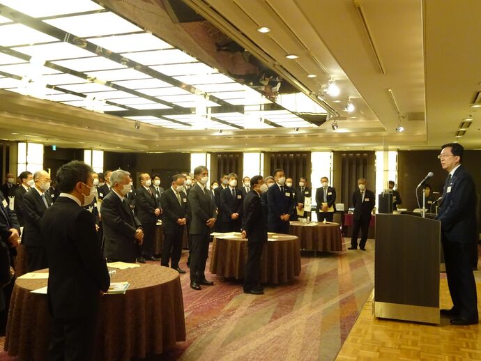 - 午後4時15分 一般社団法人岩手県工業クラブと知事との懇談会に出席し、「いわて県民計画(2019~2028)第2期アクションプラン(政策推進プラン)について」と題して講演を行った後、大手半導体企業の操業開始や業容拡大、電子部品工場の増設など、北上川流域で産業の集積と高度化が一層進展している状況、新型コロナウイルス感染症の影響や物価高騰などの様々なリスクへの対応、人口減少対策、DX・GXの推進等について意見交換を行いました。(ホテルメトロポリタン盛岡ニューウイング)