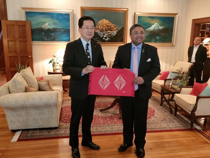 - 午前10時30分 今後の岩手県との交流促進に向けて、ジョージ・シビ駐日インド共和国特命全権大使を表敬訪問し、意見交換を行いました。(東京都)