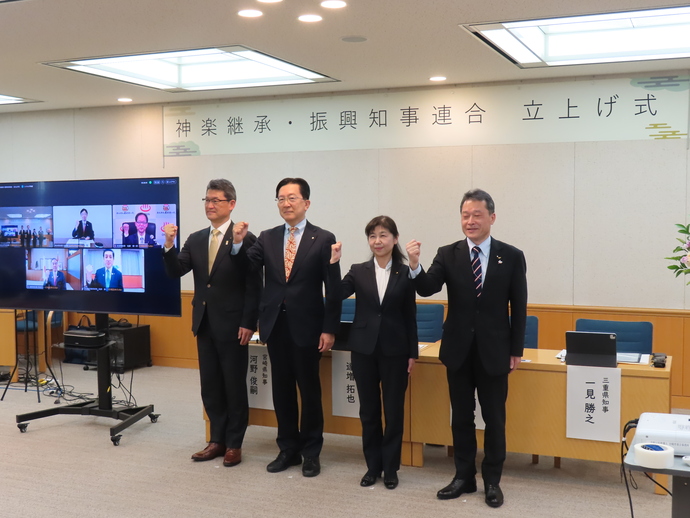 - 午前12時30分 日本各地の神楽のユネスコへの無形文化遺産登録を目指した、全国24道県の知事による「神楽継承・振興知事連合」の立ち上げ式に共同代表として出席しました。(東京都)
