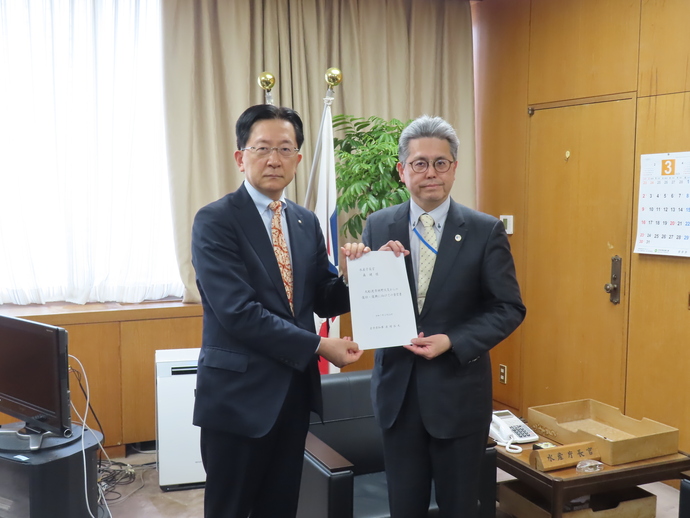- 午後2時00分 日総工産株式会社より、令和7年度開設予定の半導体関連人材育成施設に対し、企業版ふるさと納税による研修設備の贈呈を頂きました。(第一応接室)