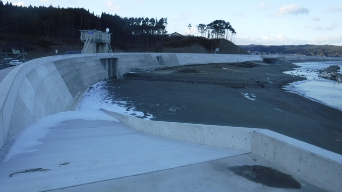 (野田村) 既設防潮堤嵩上げ・一部新設 :計画堤防高T.P.+14.0m (被災前T.P.+12.0m)