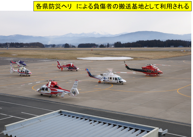 発災直後から仙台空港が被災し、東北新幹線も運休となったことから、被災を免れた東北に地方空港が公共交通としての役割を発揮しました。