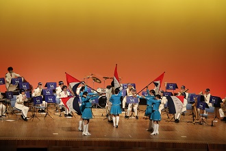 カラーガード隊のフラッグ演技とともに全7曲を演奏し、生の音楽を楽しんでいただきました。