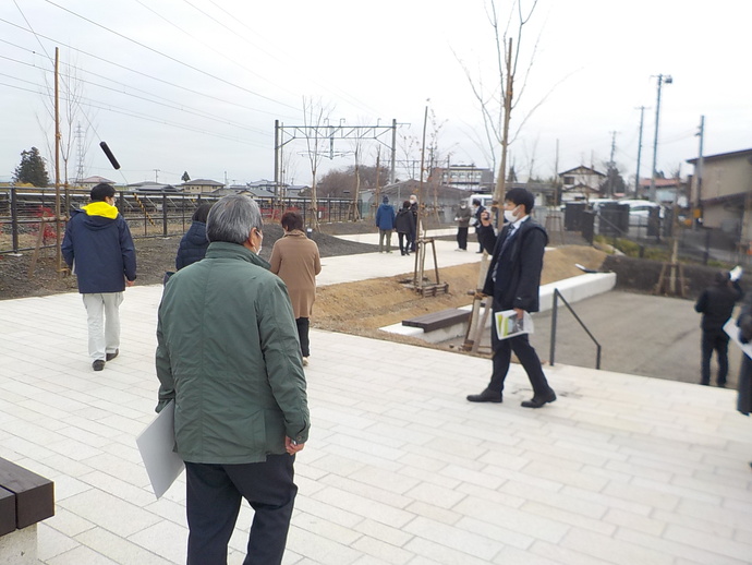 整備を行ってきた3か所の小公園のうち、1か所の館前小公園は平成25年に利用開始していますが、残りの2か所の泉屋公園(いずみやこうえん)と上坊小公園(わんぼうしょうこうえん)についても施設が完成したことから、事業の一区切りとして令和3年12月10日(金曜)に利用開始のセレモニーを行いました。