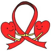シンボルマークのレッドリボンを大きく目立たせました。横にいる2つのハートが世界中にレッドリボンを広めてくれるのをイメージして描きました。