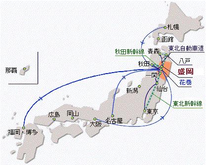 - 福冈至盛冈:约120分钟、花卷机场至福冈